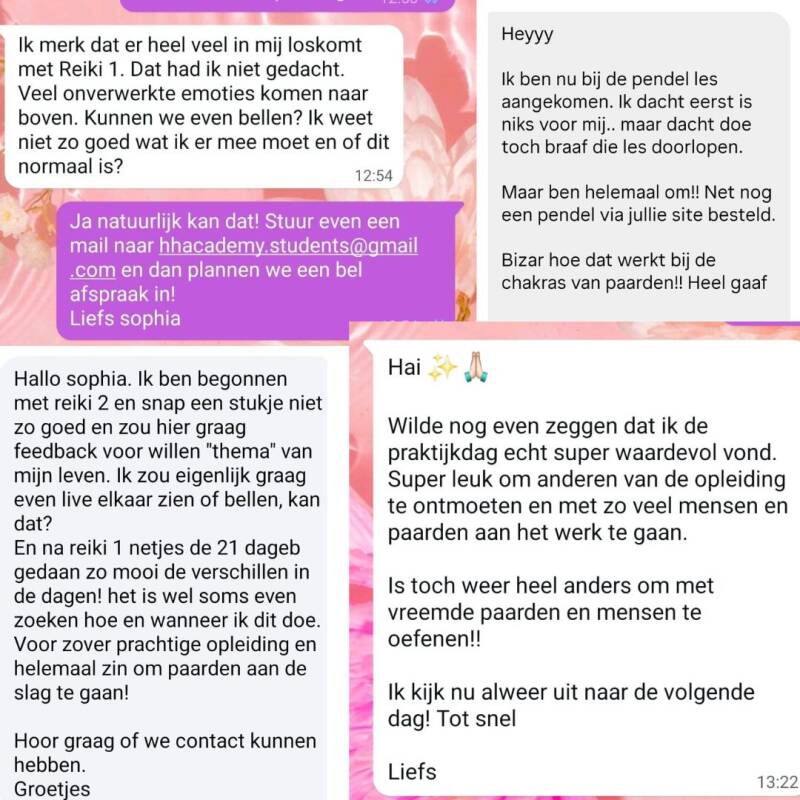 Wij geloven dat het belangrijk is dat je eerst zelf ervaart wat Reiki voor jou doet. Dit bouwt niet alleen je zelfvertrouwen op, maar zorgt er ook voor dat je met paarden kunt werken vanuit een plek van oprechte ervaring en begrip. Het mooie is: je neemt die ervaring mee wanneer je later paardeneigenaren ondersteunt.